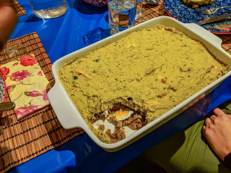 Pastel de Choclo is typical Chilean dish that is quite similar in concept to a Shepherd’s pie. Instead of using mashed potato, a savoury corn mash is used. I really enjoyed eating this dish in South America, it was a really hearty, wholesome dish that celebrated their local produce.