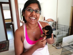So, it just so happened, I was looking on Dogzonline, and I noticed an ad for a miniature smooth haired Dachschund in Sutton! Sutton is 20 minutes away from where I live – it was a sign! Ben and I went to see the puppy that day, and we just fell in love with Little Lola.